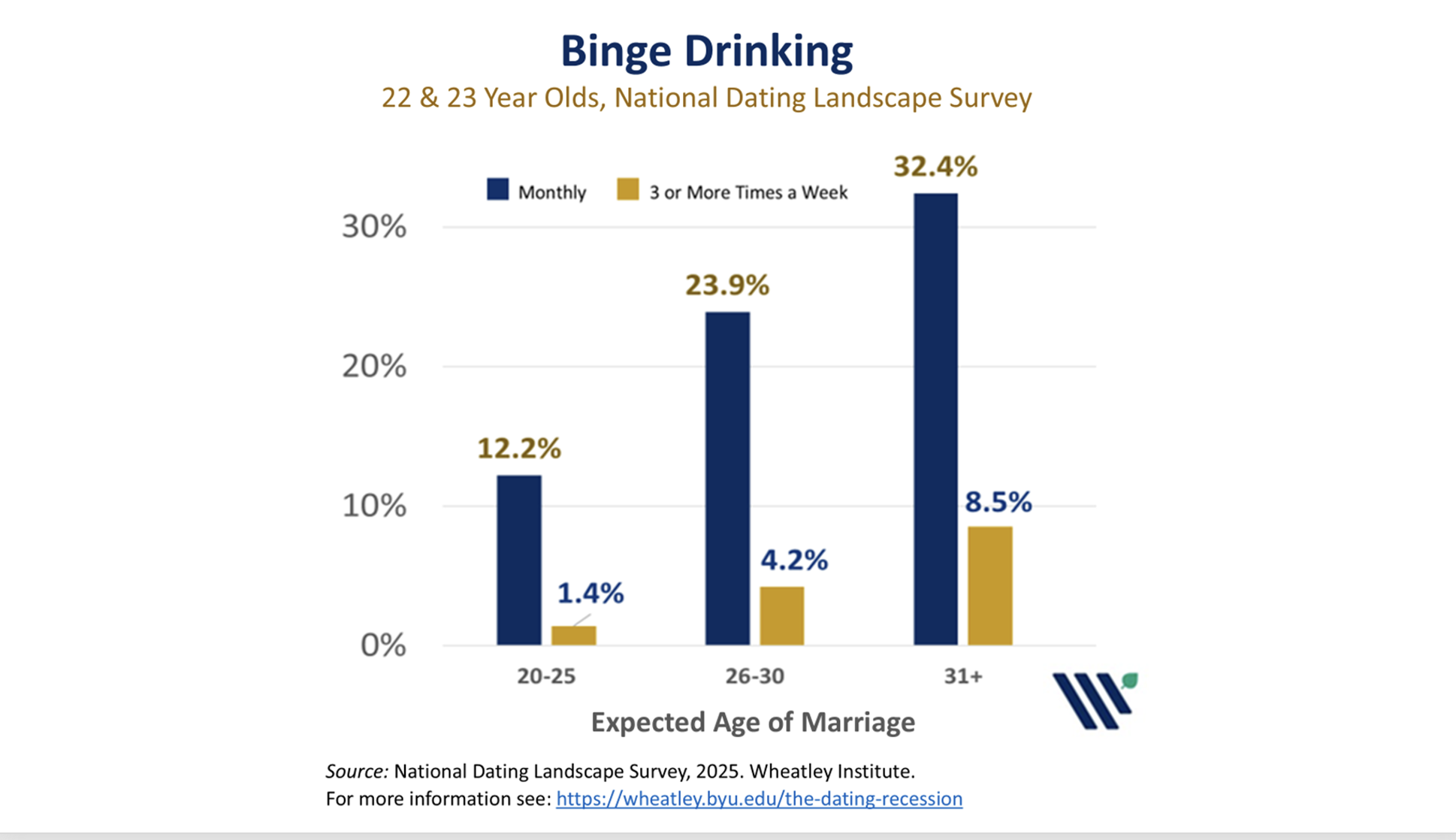 Binge drinking, however, is only one indicator in a broader pattern. Extended or eroded marital horizons are also linked to increased rates of drug use, risky sexual behavior, problematic pornography use, and other risk behaviors. The pattern is consistent across outcomes: young men who see marriage as a near-term developmental goal are more likely to regulate their behavior accordingly. Those who do not see marriage on the near horizon—or who have disengaged from the aspiration of marriage altogether—lack that same gravitational pull toward responsible behavior.